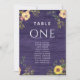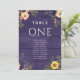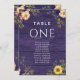 Elegant, modern, botanical, boho rustic wood purple wedding seating chart, with watercolor flowers, sunflowers and greenery.