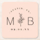 Rustic Floral Stem Wedding Monogram | Blush Square Paper Coaster