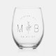 Rustic Floral Stem Wedding Monogram Stemless Wine Glass