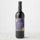 Elegant, modern, wood rustic purple wedding wine label with watercolor flowers, sunflowers and greenery.