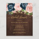 Rustic country chic affordable bridal shower party stylish invitation template on a dark brown barn wood background featuring a blush pink and navy peony roses floral border and a trendy elegant handwriting faux gold typography script.++++++++++++++ Easy to personalize with your details! +++++++++++ The invitation is suitable for a rustic country outdoor garden backyard bridal shower, brunch, or luncheon party. ++++++++++ PLEASE READ THIS BEFORE PURCHASING! This is a budget affordable wedding card printed on a paper sheet (each sheet has one card). ++++ For the best rapport price-quality, our advice is to choose the Semi-Gloss paper type (it is thick enough to be used for stationery) ++++ If you need envelopes, choose the ENVELOPE OPTION. +++ Double-check all the information and spelling of your text because you will receive exactly what you see - no one else will check anything before printing. ++++ This card is designed for size 4.5" x 5.6". In the case you choose another size of the card and text goes outside page, everything needs to be fixed before adding the product to cart. Please ask Live Design Service for help.