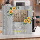 Rustic country vintage farmhouse style personalized recipe organizer cookbook binder with natural grey and brown wood and painted yellow sunflowers bouquets. ++++++++++ Personalize it with your personal or family monogram, name and your text! +++++++++ It can be a modern personal recipe book for your kitchen, a family cookbook or a beautiful keepsake gift for grandma or for a chef.