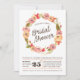 Popular, trendy high end rustic floral wedding designer flat card invites. Rustic with a vintage summer/spring time feel. Gorgeous pink and orange watercolor flowers (roses) make up a feminine beautiful circular wreath design. Bridal Shower cursive/script typography within the pretty floral wreath. A Pip Pip Hooray Design Template. Easily fill in the template with your own details here and now to have an affordable, professionally printed invite batch delivered to your door! Each invite comes with a free matching size envelope included in the affordable cost.