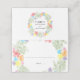 This design features a rustic floral watercolor wreath. The beautiful greenery and pink, green, purple, pink, red, orange, blue and yellow flowers combine to create a rustic elegant wreath that surrounds some of the wording text. The elegant watercolor flowers are arranged around the bride's and groom's names and wedding date on the reverse of the place card. The use of classy typography for the wording text compliments the design. This design is ideal for any wedding theme. The perfect place card design for all seasons. Matching wedding invitations and other stationery items are also available. Easy to personalize with your details. Hand write your guest names and table number in the space provided.