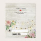 Wedding Seating Place / Table Number / Escort Card Templates - Vintage Watercolor Pink Flowers and Elegant String Lights on Rustic Light White Wash Soft Wood Texture Background.