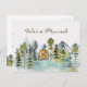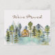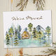 Introducing our Rustic Foggy Forest Mountain Cabin We Moved Postcard. Featuring a cozy cabin nestled in a foggy green pine forest, perfect for nature lovers and hiking enthusiasts, this serene landscape captures the beauty of the woods and the peacefulness of the forest in vintage style.