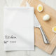 Custom-designed kitchen towel featuring rustic botanical element with personalized name and year.