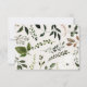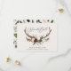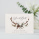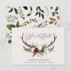 Rustic foliage, floral and stag antlers wedding save the date card. With beautiful watercolor foliage, white florals, wood slice and script hand writing. This modern invite is sure to set the style for your upcoming party.