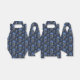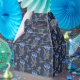 Pattern with blue flowers, dots and green leaves on dark background. Rustic folk art floral texture