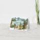 This is a forest, mountain theme design, with momma and baby deer. "Let the Adventure Begin!" is the inspiration. This design has rustic, watercolor mountains with reflecting lake in front, and pine trees surrounding the lake. Adult deer with her fawn on front with "Thank You!" text inside. On back, fawn is inside a watercolor, floral, oval wreath.