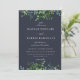 Rustic Forest Foliage Border Navy Blue Wedding Invitation