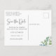 Rustic watercolor forest foliage arrangements, wedding save the date postcard. Card features elegant calligraphy "Save the Date", on front and back.