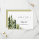 Modern save-the-date cards with watercolor illustrations of trees, for a rustic feel. The reverse side is a coordinating light green.