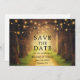 Rustic Forest Path String Lights Save the Date Wedding Engagement Announcement Card