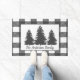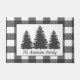 Rustic forest trees gray and white buffalo check plaid doormat. This mat can be personalized with your family's name!