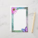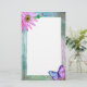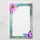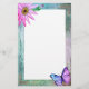 A green wooden picture frame creates a rustic border, with a pink flower and pink and purple butterfly on the corners of this beautiful stationery. Perfect for anyone who loves the country look!