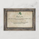 Rustic Framed Fishing Lure Details Insert Card features a brown wood frame around parchment paper background. A green fishing lure can be found at the top of this stationery and fonts in black and green in fun fonts and styling's throughout. Showcases the word DETAILS in a border and you can customize it and add your wording. Use it as reception, directions or accommodations card, for your website or registry etc.. coordinating invite in our storefront.