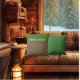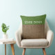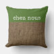 Country Cabin French Throw Pillow. Rustic burlap look with Chez Nous against Green. Means "at our house" in French.
