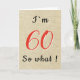 Rustic Funny Inspirational Quote 60th Birthday Card. The design comes with a funny quote I`m 60 so what. An inspirational greeting card for a man or a woman celebrating the 60th birthday and has a sense of humor. You can change the age number.
