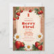Rustic Gingham Strawberries Daisie 1st Birthday Invitation