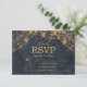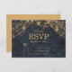 Rustic Glam Navy Blue Gold Wedding RSVP Card