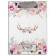 Rustic Glamour Boho Antlers Floral Personalized Clipboard