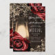 Rustic Glow Lantern Dark Red Roses & Brown Wedding Invitation