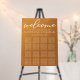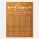 This rustic gold wedding seating chart foam board with 16 tables features elegant white typography overlaid on an understated earth tone gradient. Simple light orange and brown hues follow the current fall trends for a bohemian wedding this autumn. Complete the look with your minimalist script over this color fade welcome sign.