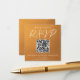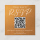 This rustic gold wedding response card features elegant white typography overlaid on an understated earth tone gradient. Simple light orange and brown hues follow the current fall trends for a bohemian wedding this autumn. Guide guests to your wedding website with this QR code they can scan to RSVP.