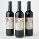 An original design anniversary wine label featuring rustic weathered white painted wood with a chic golden lining and fall leaves.