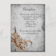 Your wedding guests will appreciate being kept up to date with your wedding reception details with this vintage-inspired, rustic wedding reception details card. It has a large, metallic copper flower at the bottom left corner with an antique grey parchment pattern background.