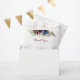 These rustic gold leaves and floral thank you wedding favor bags are perfect for a modern wedding. The design features hand-drawn watercolor purple, navy, blush, burgundy, navy flowers, green and gold leaves.