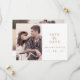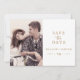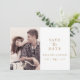 This rustic gold script photo save the date card is perfect for a country wedding. The simple and modern gold and white design features unique whimsical handwritten calligraphy lettering with a contemporary minimalist boho style. Customizable in any color. Keep the design minimal and simplistic, as is, or personalize it by adding your own graphics and artwork.