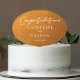This rustic gold wedding cake topper features elegant white typography reading congratulations to the happy coule on an understated earth tone gradient. Simple light orange and brown hues follow the current fall trends for a bohemian wedding this autumn. Complete the look with your minimalist script on this design.