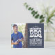 Cool rustic graduation barbecue party invitation with distressed vintage typography. Use the design tools to choose any background color to coordinate with your school colors or party theme. Add your senior photo and graduation party details on the front with a second photo, your name, class year and school name or other text on the back side. Use the design tools to add more photos and text, edit fonts and colors to create a unique graduation announcement and party invitation.