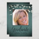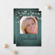 This rustic photo graduation announcement will be the perfect choice to send to your family and friends.The front of the card has a teal blue burlap textured background and frame for your photo with string lights at the top. Below your photo is the world "Graduate, class of 20XX" and your name for you to personalize in a modern script typography. Designed by world artists ©Tim Coffey and Susan Coffey. Photography © Storytree Studios, Stanford, CA.