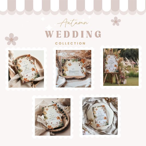 Set the tone for a warm and romantic fall celebration with this rustic design. Featuring hand-painted grapevines, autumn leaves, and acorns, it brings nature’s beauty to your wedding day. All text is fully editable.