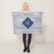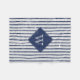 Rustic Gray Linen & Navy Blue Stripes Monogram Fleece Blanket