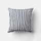 Rustic Gray Linen & Navy Blue Stripes Pattern Throw Pillow