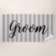 Simple stylish gray and ivory striped beach towel personalized with large Groom script lettering or customize it with your name or other text. Use the design tools to change the text fonts and colors or add your own photos to create a one of a kind personalized beach towel for your honeymoon or a unique wedding gift.