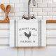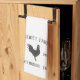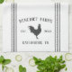 Celebrate life on the farm with this cute personalized kitchen towel featuring your family name or farm name, year established, and location in rich charcoal grey lettering accented with a rooster illustration.
