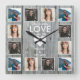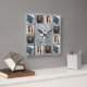 Rustic Gray Wood 12 Photo Collage Anniversary Love Square Wall Clock