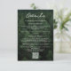 A rustic wedding enclosure card featuring a scenic forest photo background by Destei with the title “Details” in elegant typography. Space is provided for accommodation information, reception details, RSVP instructions and any additional notes for guests. A designated area for a QR code allows easy access to the couple’s wedding website. The reverse side features a green background with a fir tree silhouette and a personalizable text area for the couple’s initials and wedding date. A perfect coordinating piece for outdoor, forest, hiking or nature-inspired wedding suites.