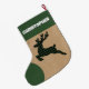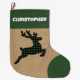 Rustic Green & Black Plaid Reindeer Custom Name Large Christmas Stocking