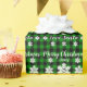 Holiday cheer! Customizable wrapping paper - add names / family / group / pets - rustic up north green and black plaid with snowflake detail