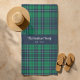 Rustic Green Blue Plaid Family Name Beach Towel