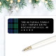 This rustic return address label features a classic green and blue tartan plaid border framing a black center panel with crisp serif typography. Perfect for holiday cards, Christmas mailings, and year-round family correspondence. The family name and address fields are easy to personalize. A handsome finishing touch for Christmas cards, party invitations, and seasonal stationery.
