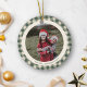 Rustic Green Buffalo Plaid Christmas Family Photo Ceramic Ornament