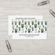 Business cards with a rustic western flavor. Designed with a bunch of cute green cactuses in a repeating pattern. Specifically, green colored prickly cactus, in all kinds of shapes and sizes, each sitting in its own dark blue flower pot. Little decorative triangles in between them. Whimsical fun illustration.