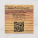 This business card front features a rustic circular saw blade on a rough cut wood background and the back holds business details. Personalize the template, remove any text or edit using the design tool to select a font style, size, and color. The back includes a coordinated design with text fields for the business name and details plus the QR code placeholder. Replace the placeholder QR code with yours. Use the QR code link to send customers to your website, photos, recommendations/reviews or other sites. This business card design may work well for wood restoration, carpenter, construction jobs or maybe your business.
